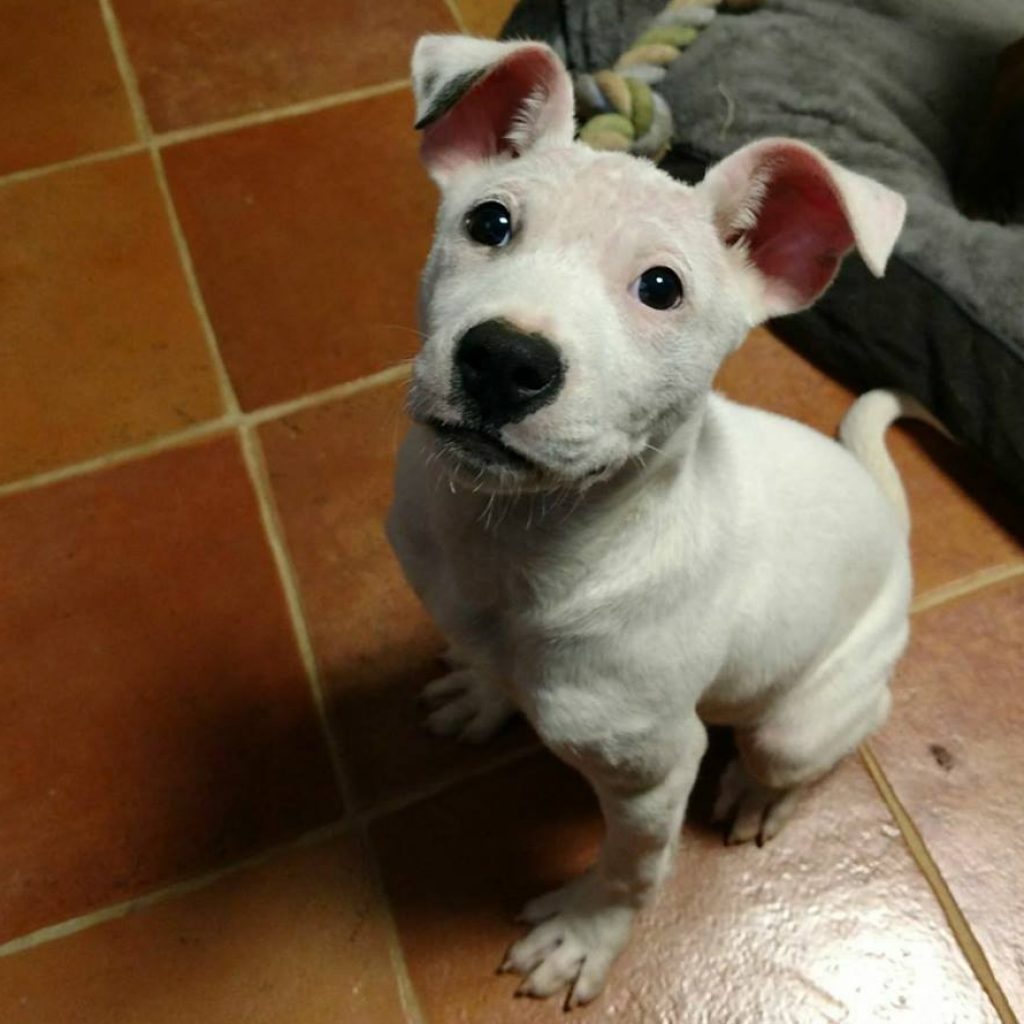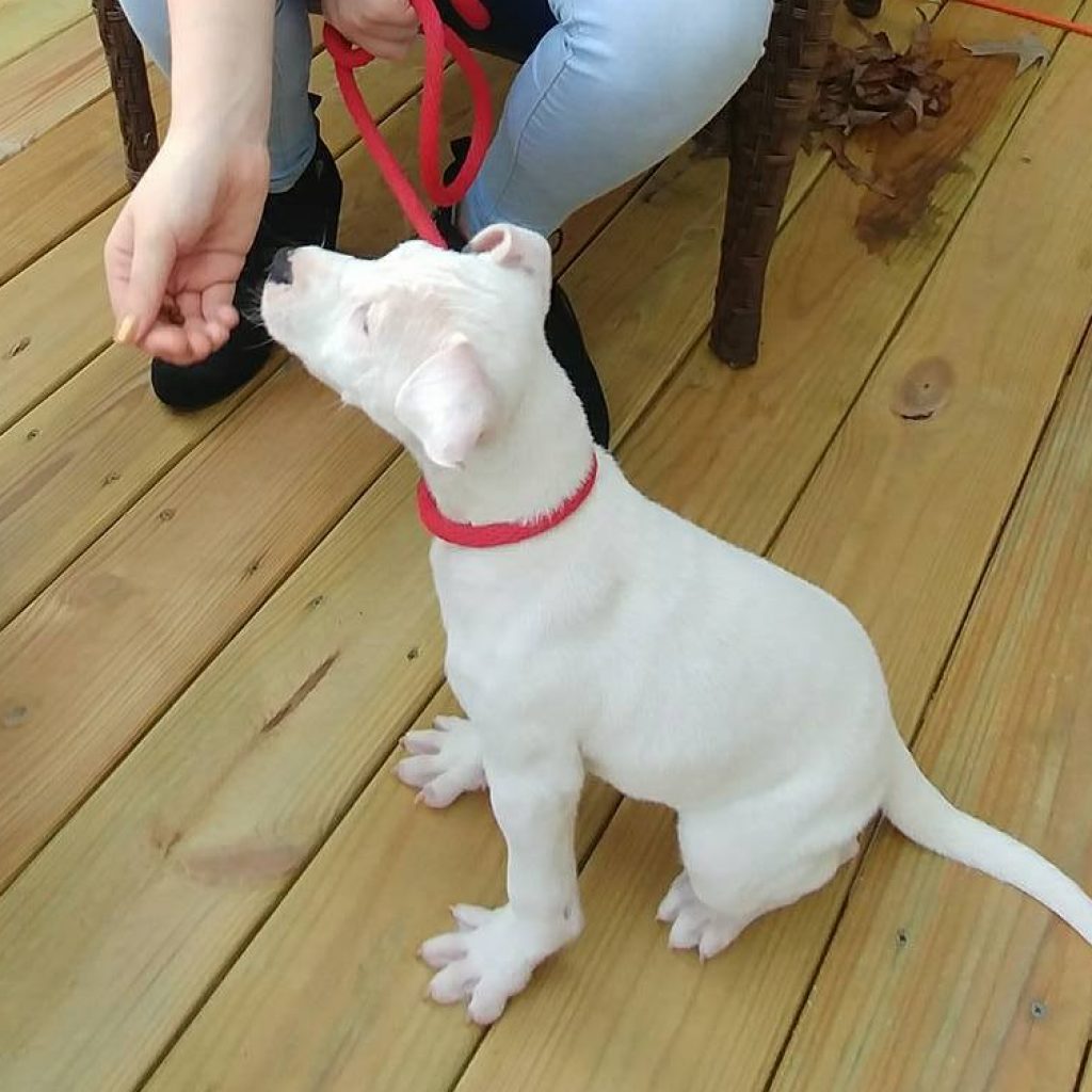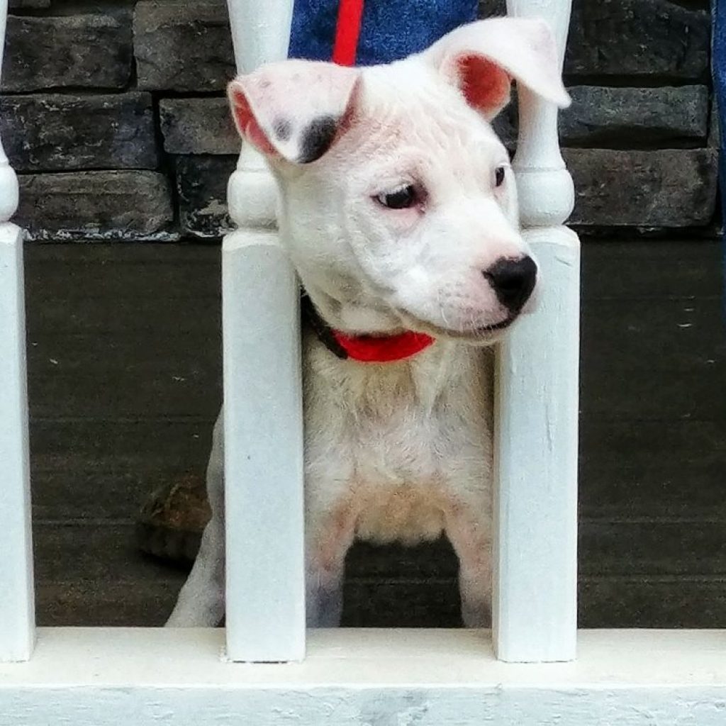 We originally chose to foster Molly because it was suspected that she was deaf, and we had experience with owning/training deaf dogs. Though it turned out, thankfully, her hearing is fine! We were still glad to have a spunky puppy around for company and to play with her foster sister, Aria. Those two entertain each other all day long, and Molly has been wonderful for the rest of our pack. Bringing her puppy energy into the mix means that playtime lasts all day long!