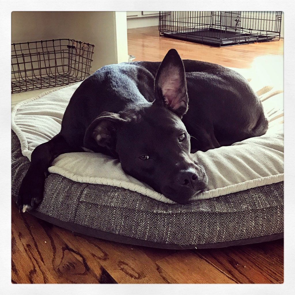 Wake up to a morning walk, followed by breakfast. Curl up on the couch next to you for the first of many naps. By lunch, he’s ready to play frisbee or fetch in the backyard followed by the afternoon nap. After chewing on a kong or nylabone, it’s time for dinner and drifting off to sleep in your lap while watching netflix.
