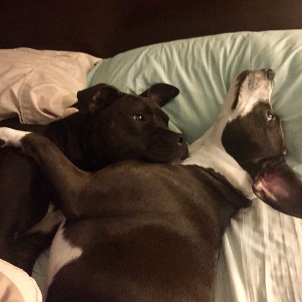 Nugget’s family will be need to be active (hiking, running, etc) to give him the exercise he needs. He is not used to being around very small kids (less than 7 years old), so he will need time and proper introduction on how to play with little ones. While he is used to playing with pibble siblings, he does not do well with cats.