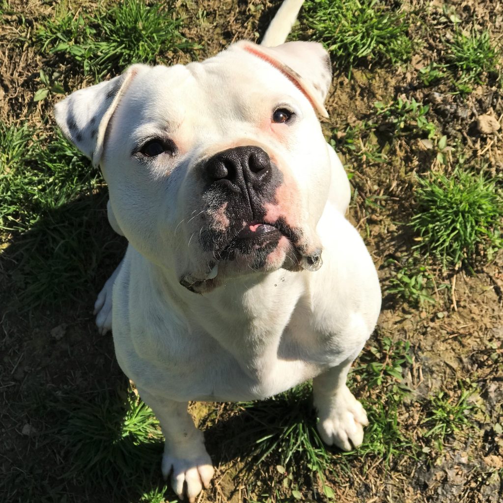 He would love an active family who has enough time to devote to him and make sure he can burn off energy. He would probably do well as a family dog with children to dote on because he adores people and is very snuggly and sweet. His favorite activities include chewing on bones and eating treats, but his true favorite thing is to be right by your side! Although he can be a little choosy about his canine friends, so it would be best to make sure it’s a love match.
