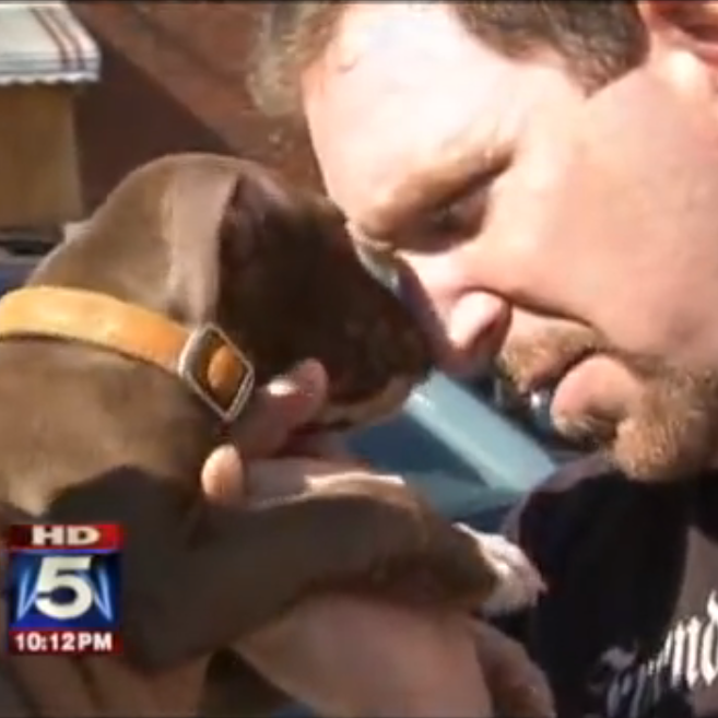 Friends to the Forlorn founder, Jason Flatt, works to adopt a deaf pit bull into a loving home.