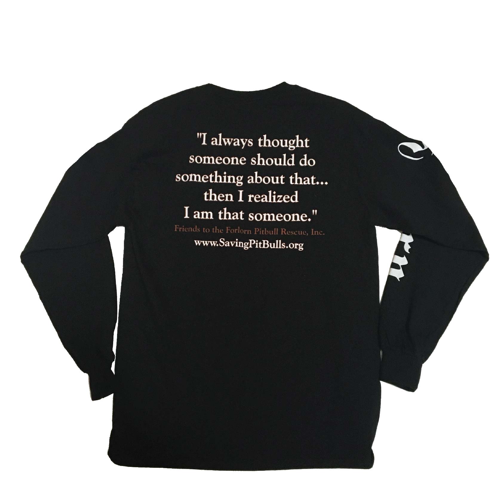 The proceeds from all merchandise sales go toward supporting the animal rescue & community outreach efforts of Friends to the Forlorn Pitbull Rescue, Inc.