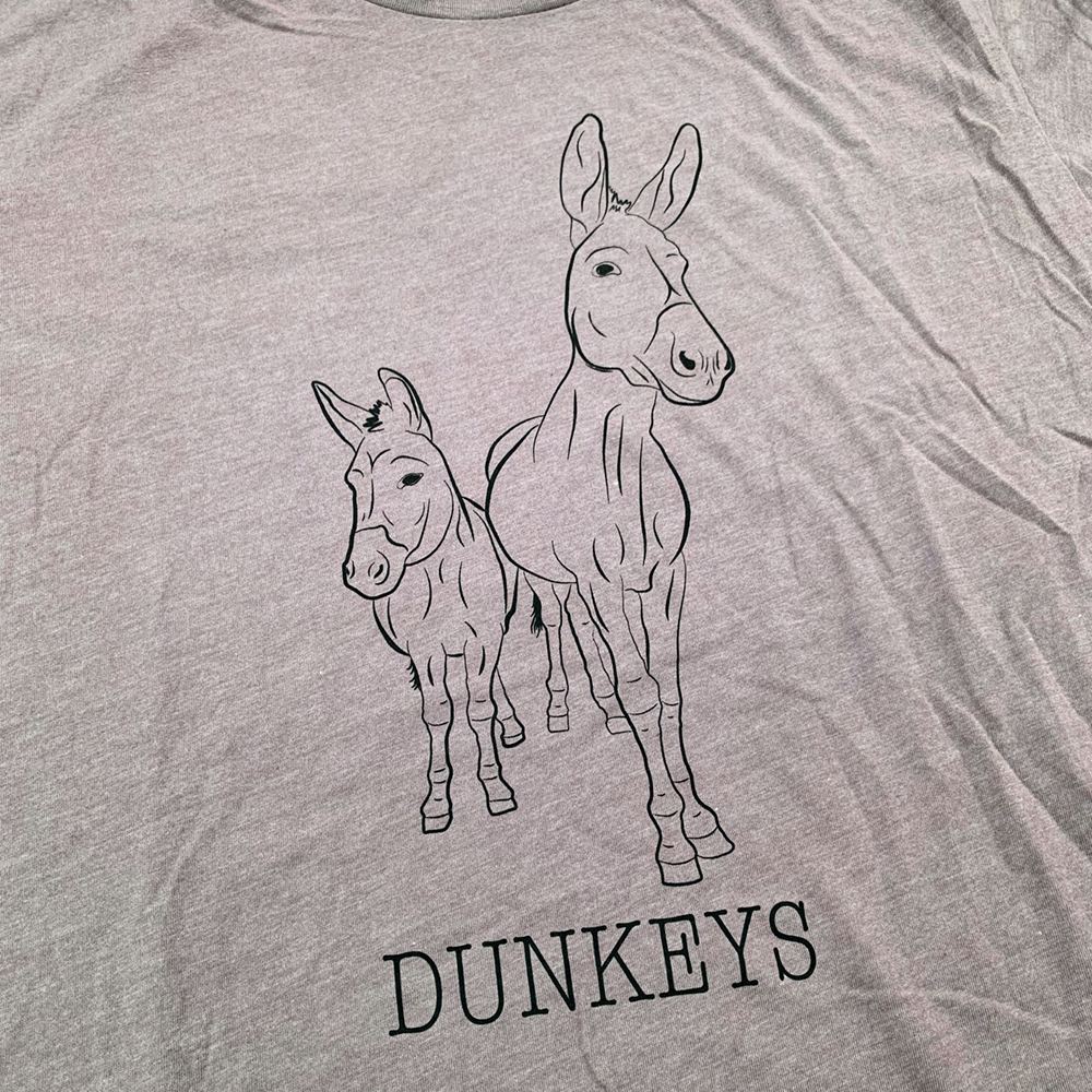 Features custom artwork of beloved FTTF donkeys, Brutus and Jenny.