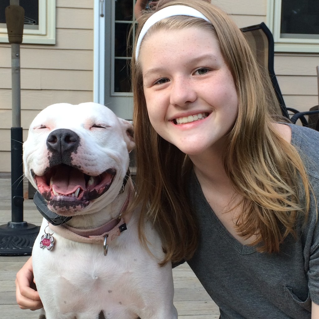 Elsa is like a little lap dog yet super sized. We couldn’t be happier with our little pitbull from Friends to the Forlorn. Elsa is our 3rd rescue and first pitbull and she just blended right in to the family. She is stubborn and doesn’t always welcome new friends but she is super cute and loved by all.